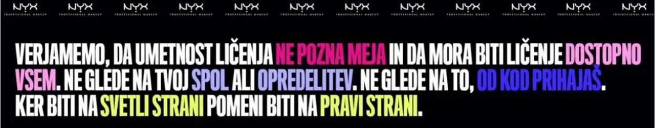 Z uradnim prihodom na slovenski trg bo NYX Professional Makeup na voljo ekskluzivno v prodajalnih dm, kar slovenskim potrošnikom omogoča neposreden dostop do blagovne znamke, ki lepotno industrijo nenehno premika naprej z vključevanjem, pristnostjo in pogumnim samoizražanjem.
